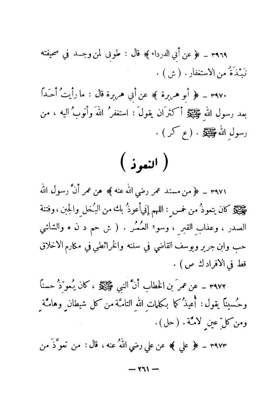 3973 – "علي" عن علي رضي الله عنه، قال: "من تعوذ من