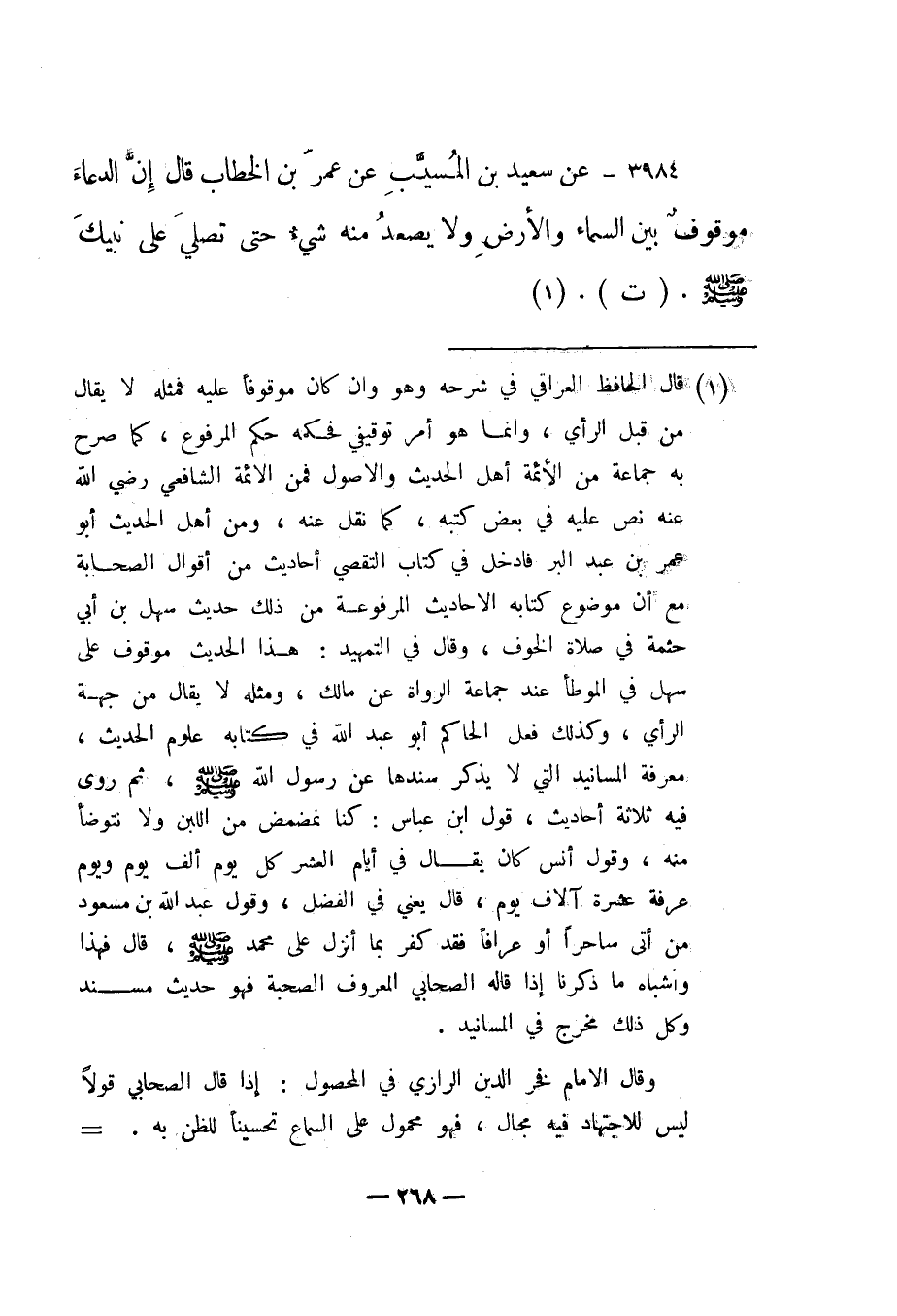 3984 - عن سعيد بن المسيب عن عمر بن الخطاب قال "إن الدعاء موقوف بين السماء والأرض ولا