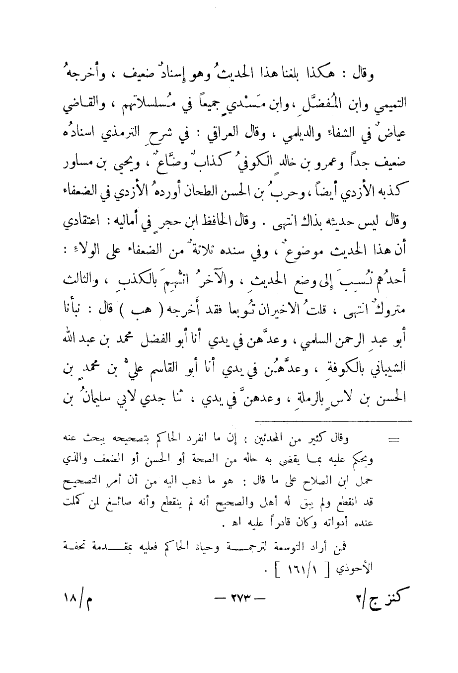 = وقال كثير من المحدثين: إن ما انفرد الحاكم بتصحيحه يبحث عنه ويحكم عليه بما يقضي به حاله من الصحة أو الحسن أو الضعف والذي حمل ابن الصلاح على ما قال: هو ما ذهب إليه من أن أمر التصحيح قد انقطع ولم يبق له أهل والصحيح أنه لم ينقطع وأنه صائغ لمن كملت عنده أدواته وكان قادرا عليه انتهى.