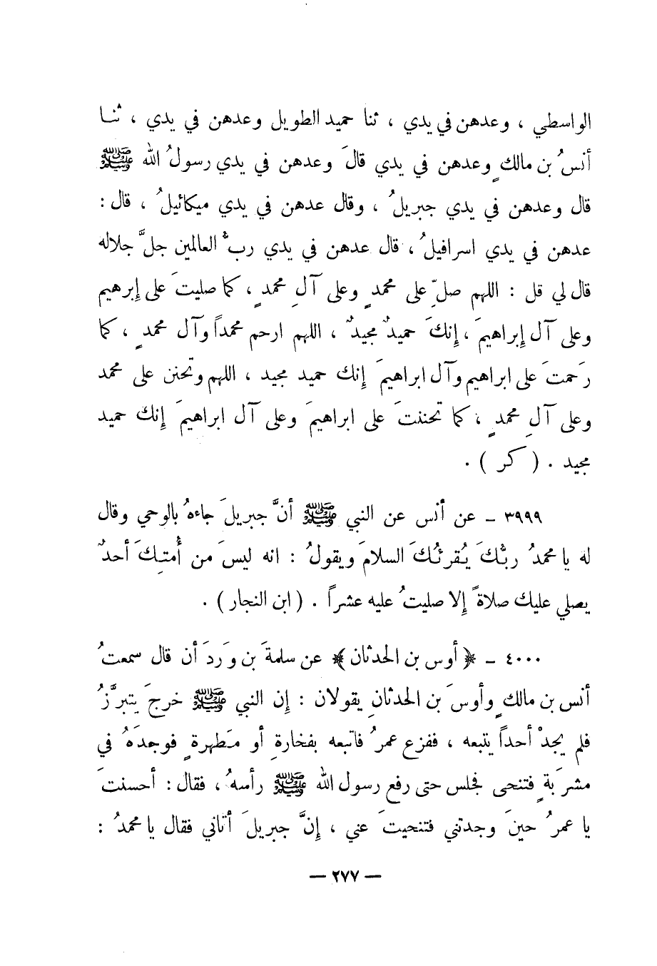 الواسطي، وعدهن في يدي، ثنا حميد الطويل وعدهن في يدي، ثنا أنس بن مالك وعدهن في يدي قال "وعدهن في يدي رسول الله صلى الله عليه وسلم قال وعدهن في يدي جبريل، وقال عدهن في يدي ميكائيل، قال: عدهن في يدي إسرافيل، قال عدهن في يدي رب العالمين جل جلاله قال لي قل: "اللهم صل على محمد وعلى آل محمد، كما صليت على إبراهيم وعلى آل إبراهيم، إنك حميد مجيد، اللهم ارحم محمدا وآل محمد، كما رحمت على إبراهيم وآل إبراهيم إنك حميد مجيد، اللهم وتحنن على محمد وعلى آل محمد، كما تحننت على إبراهيم وعلى آل إبراهيم إنك حميد مجيد". "كر".