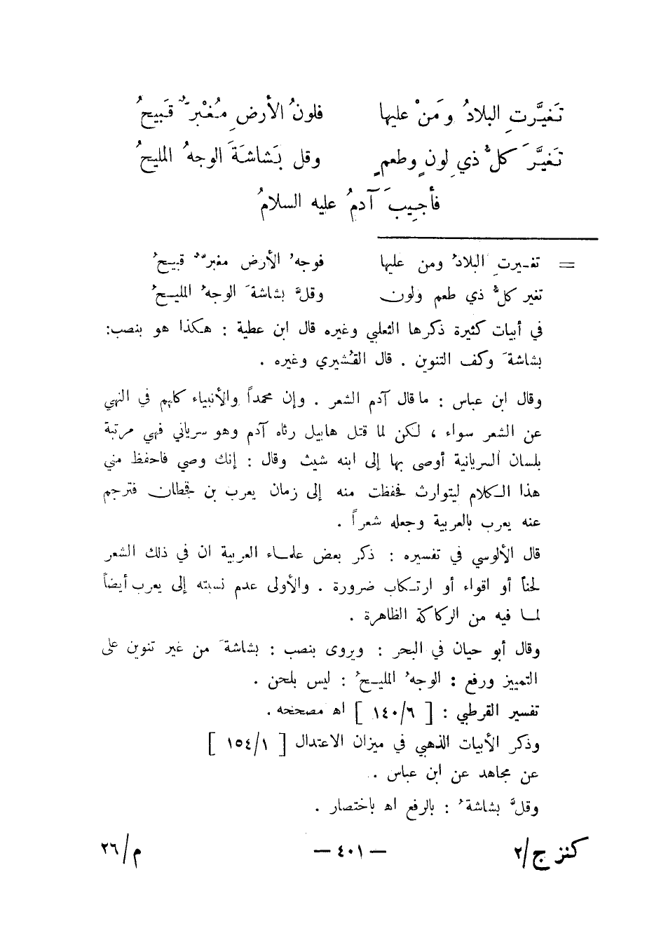 وذكر الأبيات الذهبي في ميزان الاعتدال [1/154] . عن مجاهد عن ابن عباس. وقل بشاشة: بالرفع. اه باختصار.