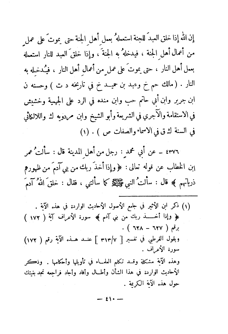 1 ذكر ابن الأثير في جامع الأصول الأحاديث الواردة في هذه الآية. {وَإِذْ أَخَذَ رَبُّكَ مِنْ بَنِي آدَمَ} سورة الأعراف آية "172" برقم "627 - 628".