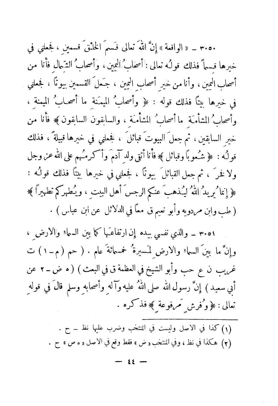 3051- "والذي نفسي بيده إن ارتفاعها كما بين السماء والأرض، وإن ما بين السماء والأرض لمسيرة خمسمائة عام". "حم "م –1ت غريب ن ع حب وأبو الشيخ في العظمة ق في البعث" "هـ ض –2عن أبي سعيد" إن رسول الله صلى الله عليه وآله وأصحابه وسلم قال في قوله تعالى: {وَفُرُشٍ مَرْفُوعَةٍ} فذكره.