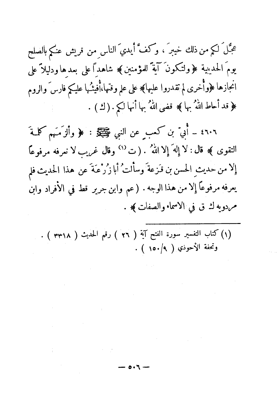 1 كتاب التفسير سورة الفتح آية "26" رقم الحديث "3318". وتحفة الأحوذي "9/150".