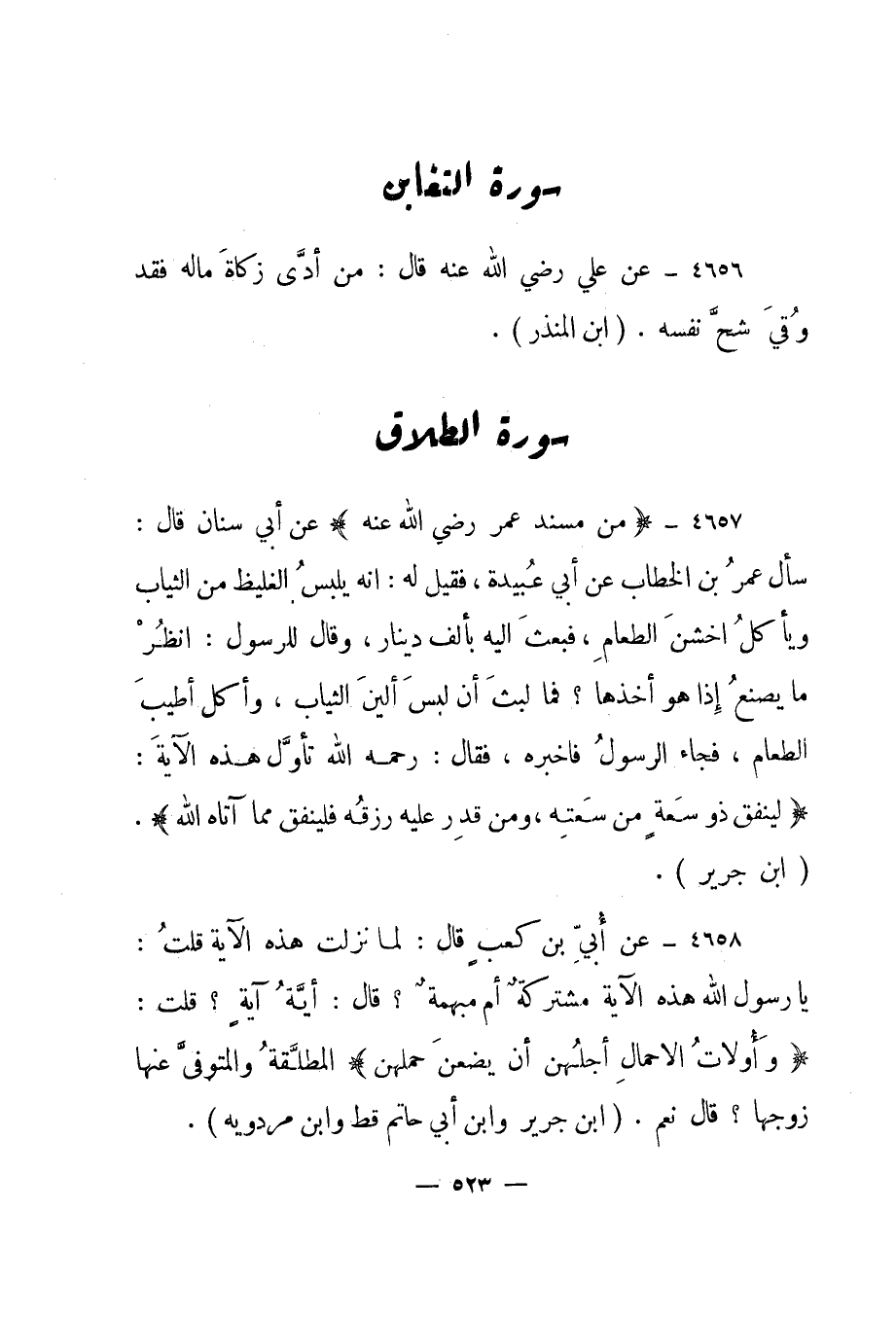 4656- عن علي رضي الله عنه قال: "من أدى زكاة ماله فقد وقي شح نفسه". "ابن المنذر".