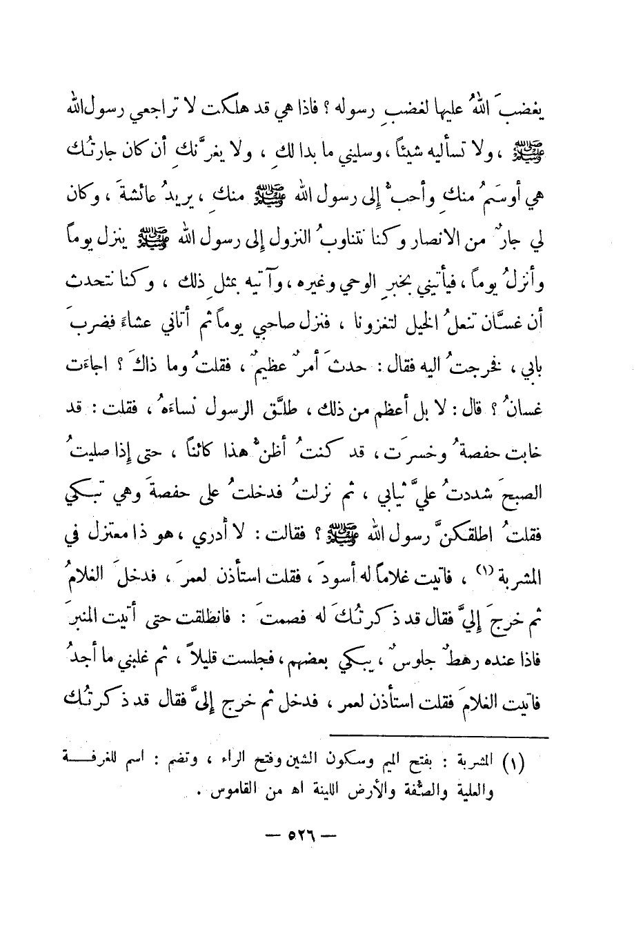 1 المشربة: بفتح الميم وسكون الشين وفتح الراء، وتضم: اسم للغرفة والعلية والصفة والأرض اللينة. اه من القاموس.