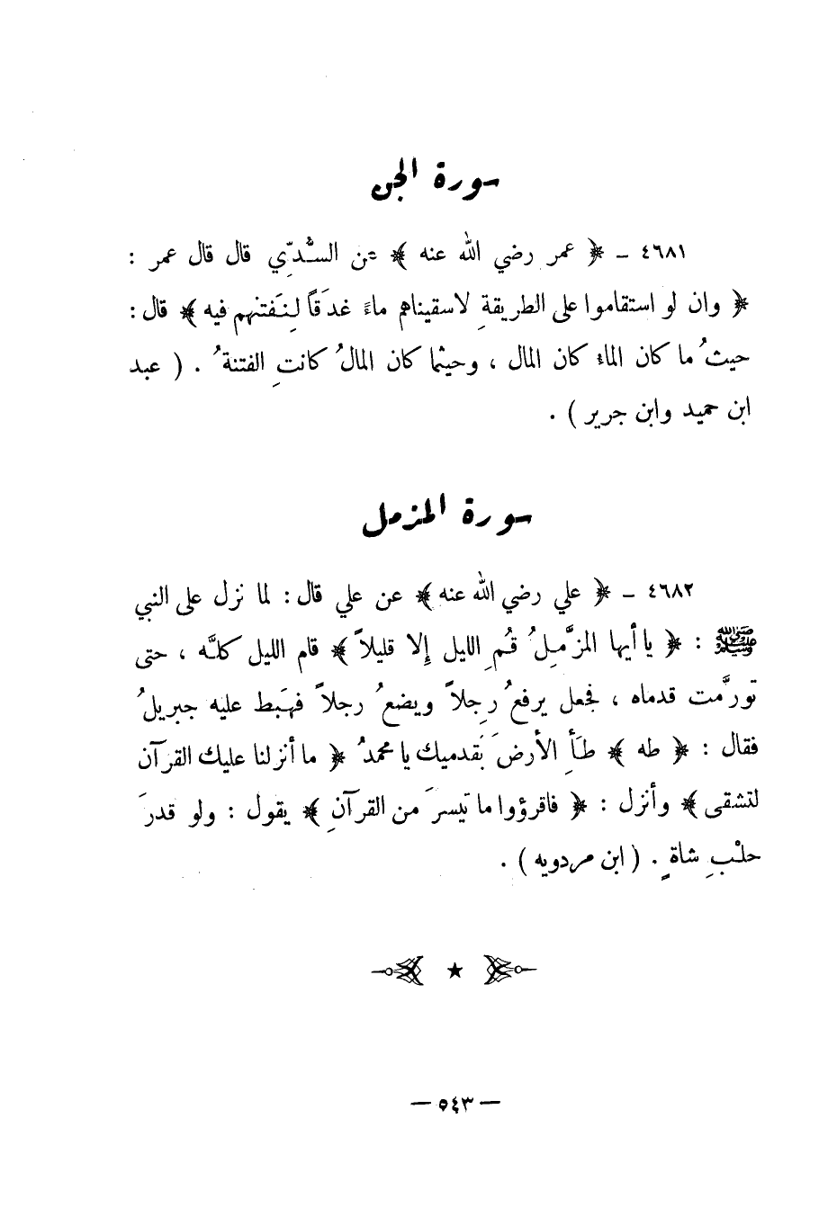 4681- "عمر رضي الله عنه" عن السدي قال قال عمر: {وَأَلَّوِ اسْتَقَامُوا عَلَى الطَّرِيقَةِ لَأَسْقَيْنَاهُمْ مَاءً غَدَقاً لِنَفْتِنَهُمْ فِيهِ} قال: "حيث ما كان الماء كان المال، وحيثما كان المال كانت الفتنة". "عبد بن حميد وابن جرير".