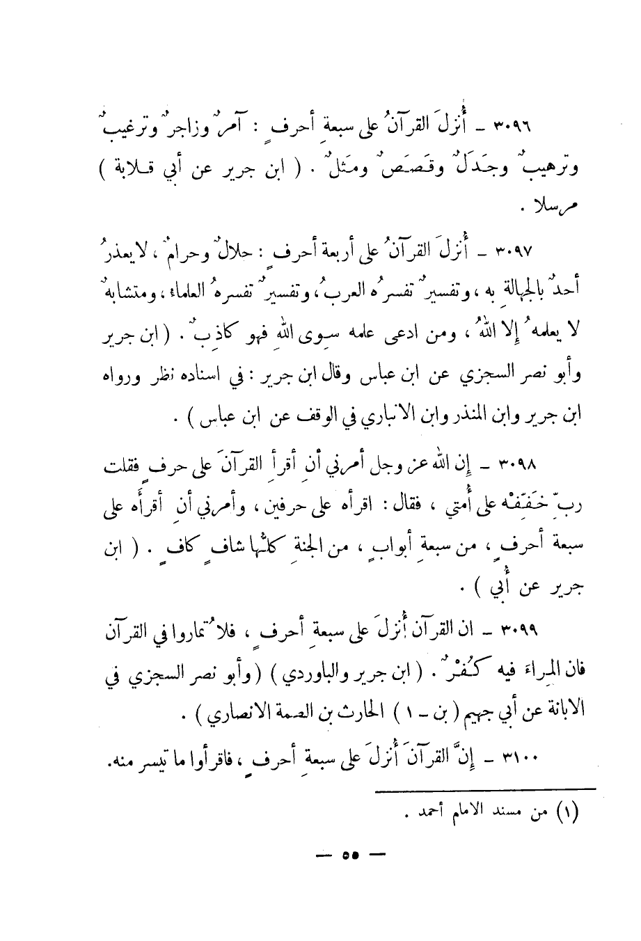 3100- "إن القرآن أنزل على سبعة أحرف، فاقرأوا ما تيسر منه".