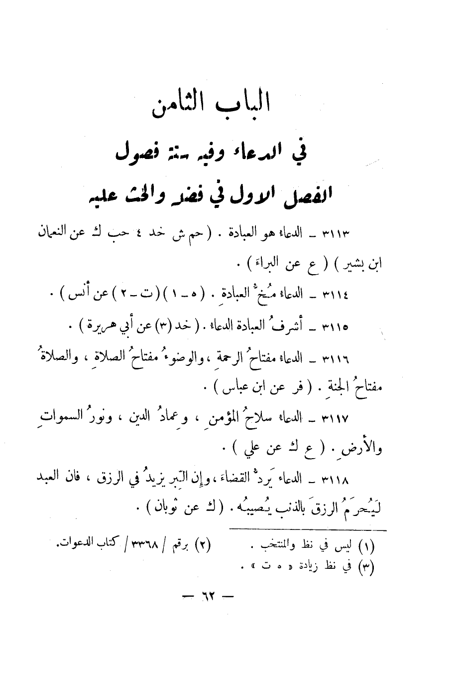 3113- "الدعاء هو العبادة". "حم ش خد 4 حب ك عن النعمان ابن بشير" "ع عن البراء".
