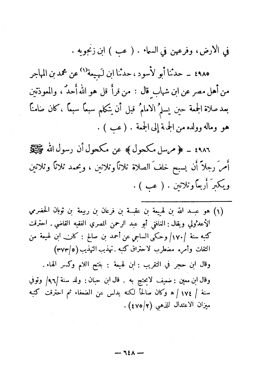 4986- "مرسل مكحول" عن مكحول "أن رسول الله صلى الله عليه وسلم أمر رجلا أن يسبح خلف الصلاة ثلاثا وثلاثين، ويحمد ثلاثا وثلاثين ويكبر أربعا وثلاثين". "عب".