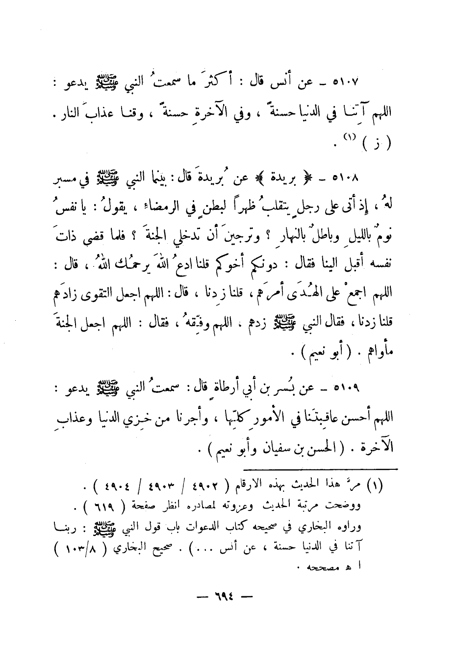 ورواه البخاري في صحيحه كتاب الدعوات باب قول النبي صلى الله عليه وسلم: ربنا آتنا في الدنيا حسنة، عن أنس ... ". صحيح البخاري "8/103"اه مصححه.