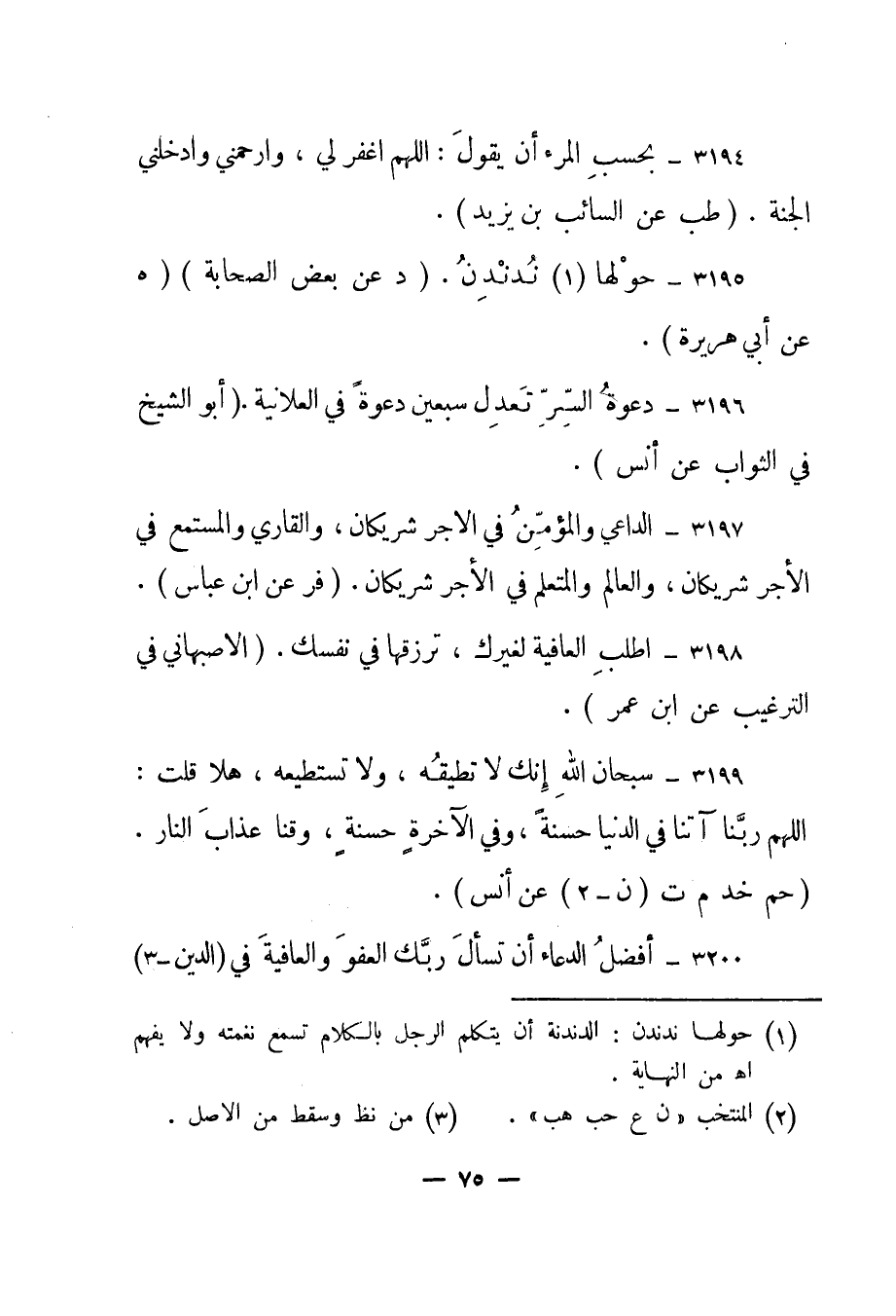 3196- "دعوة السر تعدل سبعين دعوة في العلانية". "أبو الشيخ في الثواب عن أنس".