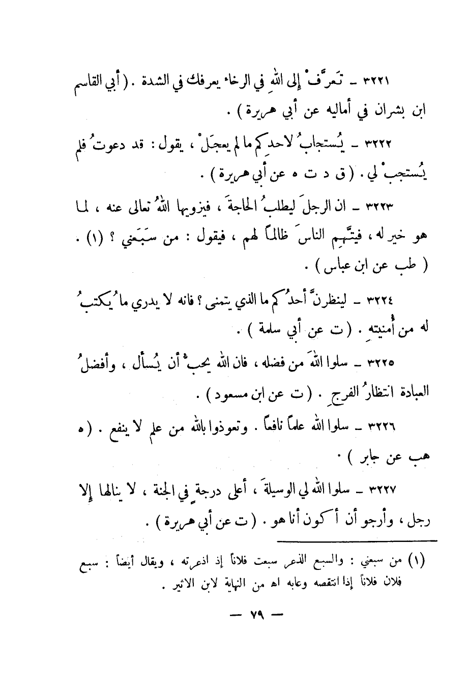 3222- "يستجاب لأحدكم ما لم يعجل، يقول: قد دعوت فلم يستجب لي". "ق د ت هـ عن أبي هريرة".
