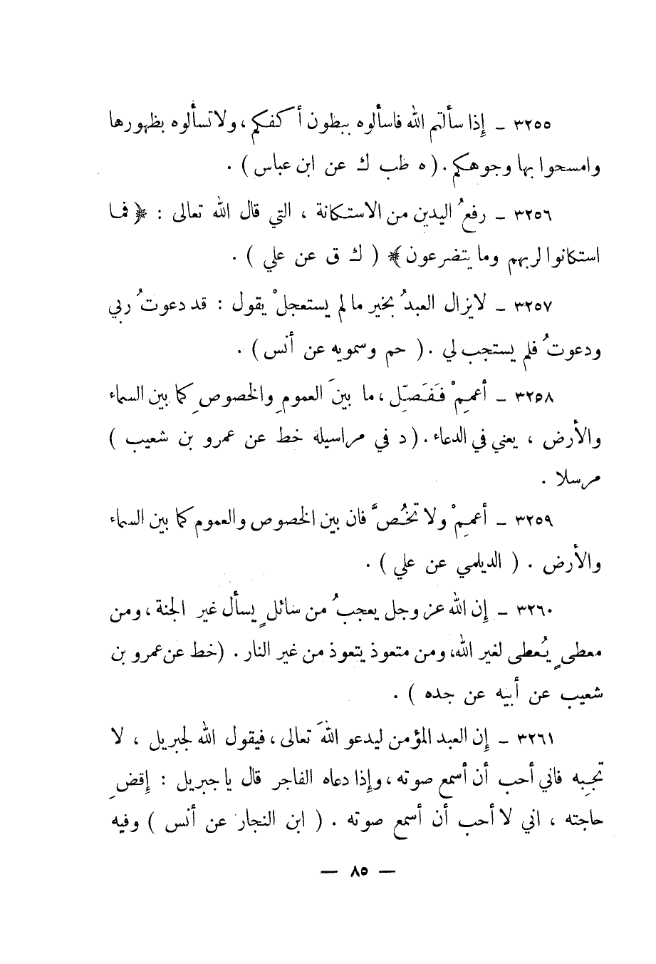 3255- "إذا سألتم الله فاسألوه ببطون أكفكم، ولا تسألوه بظهورها وامسحوا بها وجوهكم". "هـ طب ك عن ابن عباس".