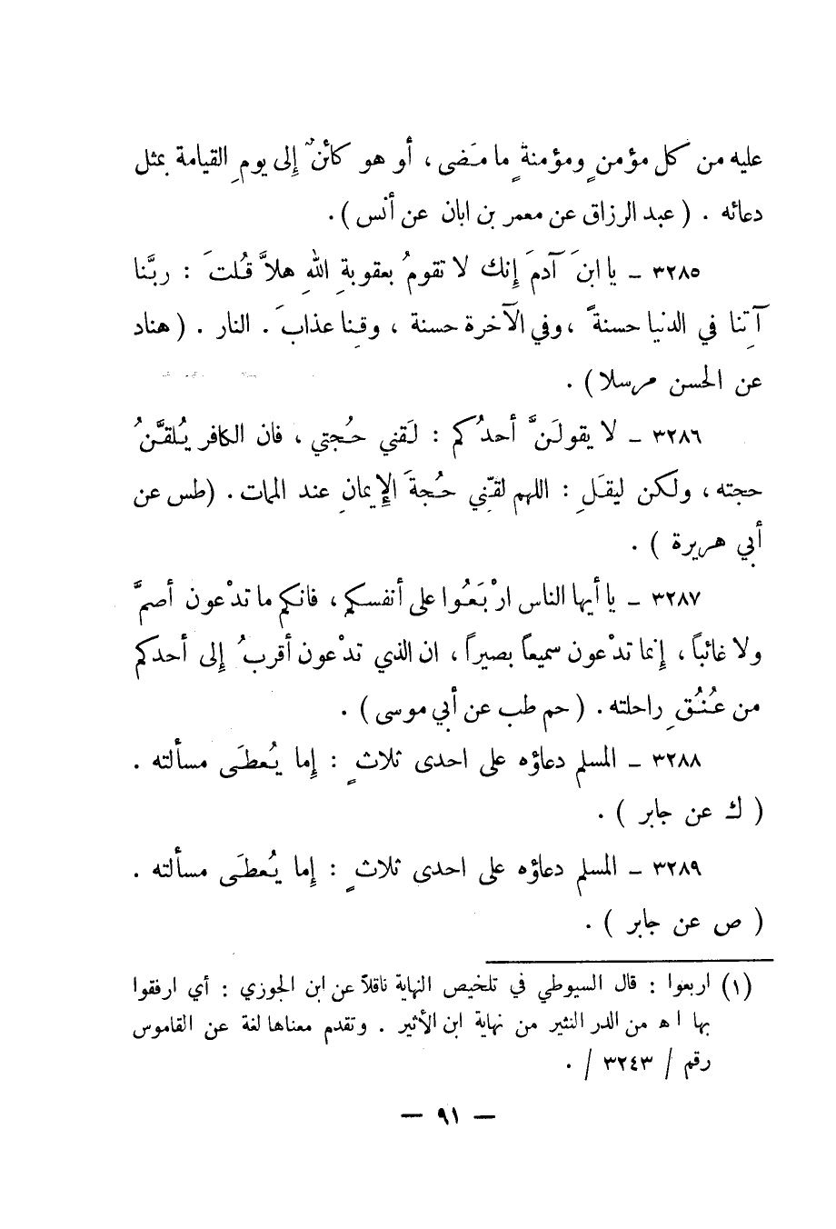 3289- "المسلم دعاؤه على إحدى ثلاث: إما يعطى مسألته". "ص عن جابر".