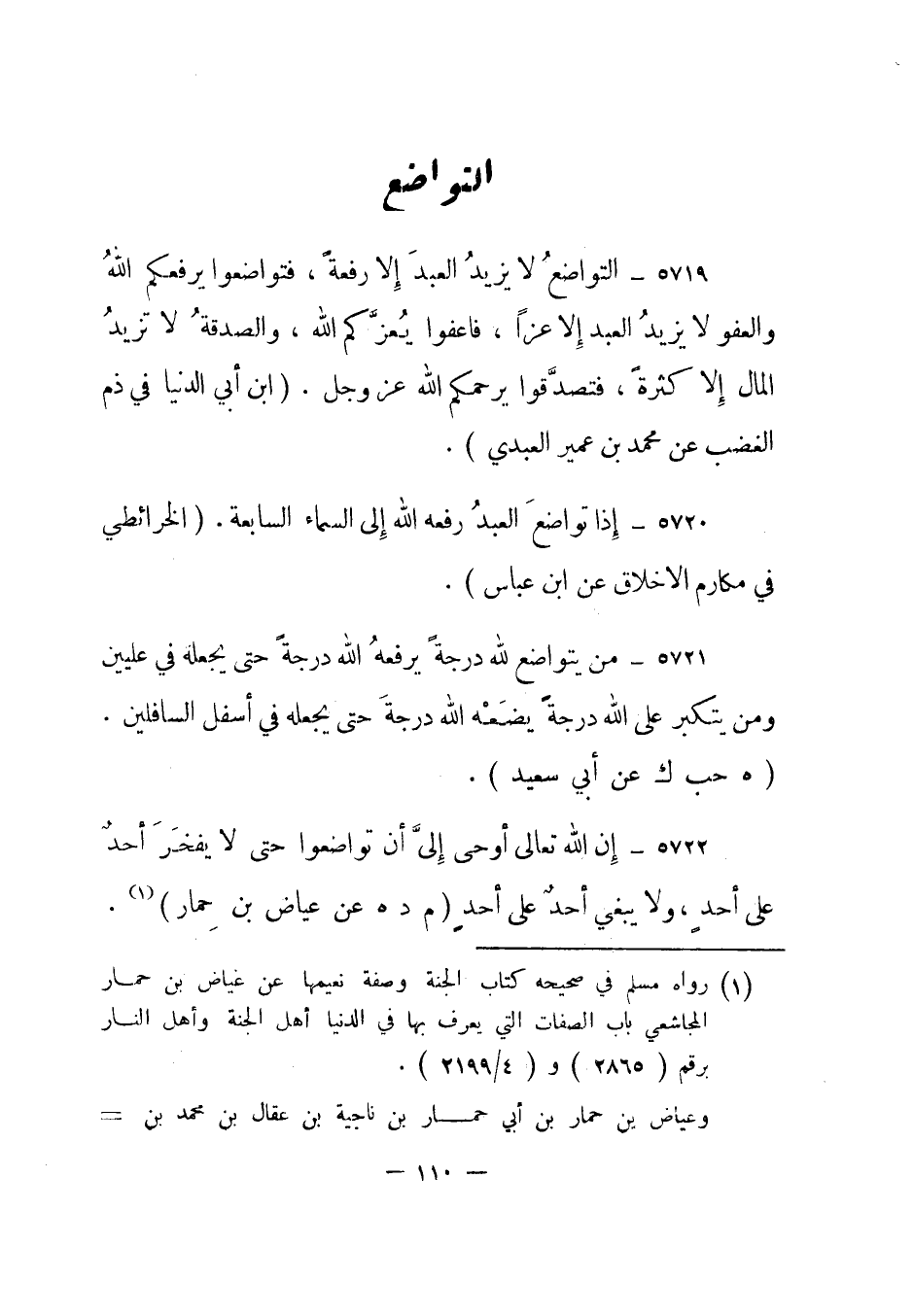 1 رواه مسلم في صحيحه كتاب الجنة وصفة نعيمها عن عياض بن حمار المجاشعي باب الصفات التي يعرف بها في الدنيا أهل الجنة وأهل النار برقم "2865" و "4/2199".