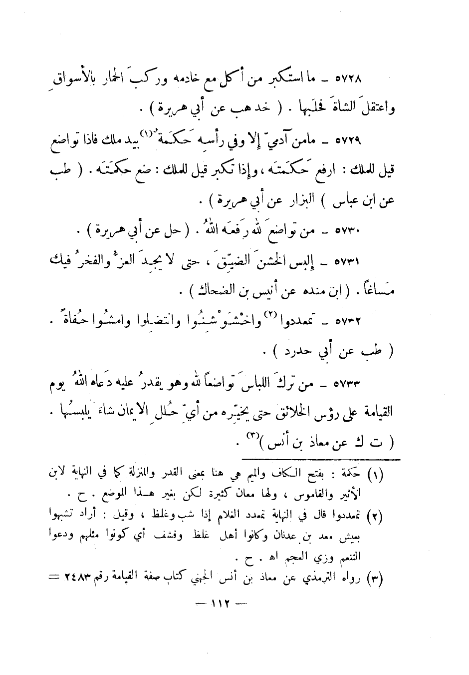 5728- ما استكبر من أكل مع خادمه وركب الحمار بالأسواق واعتقل الشاة فحلبها. "خد هب عن أبي هريرة".