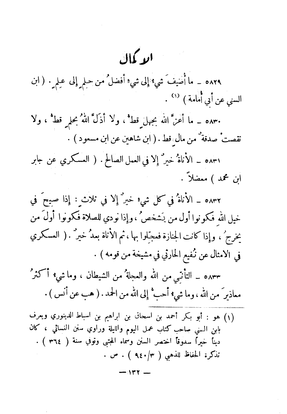 5829- ما أضيف شيء إلى شيء أفضل من حلم إلى علم. "ابن السني عن أبي أمامة"1