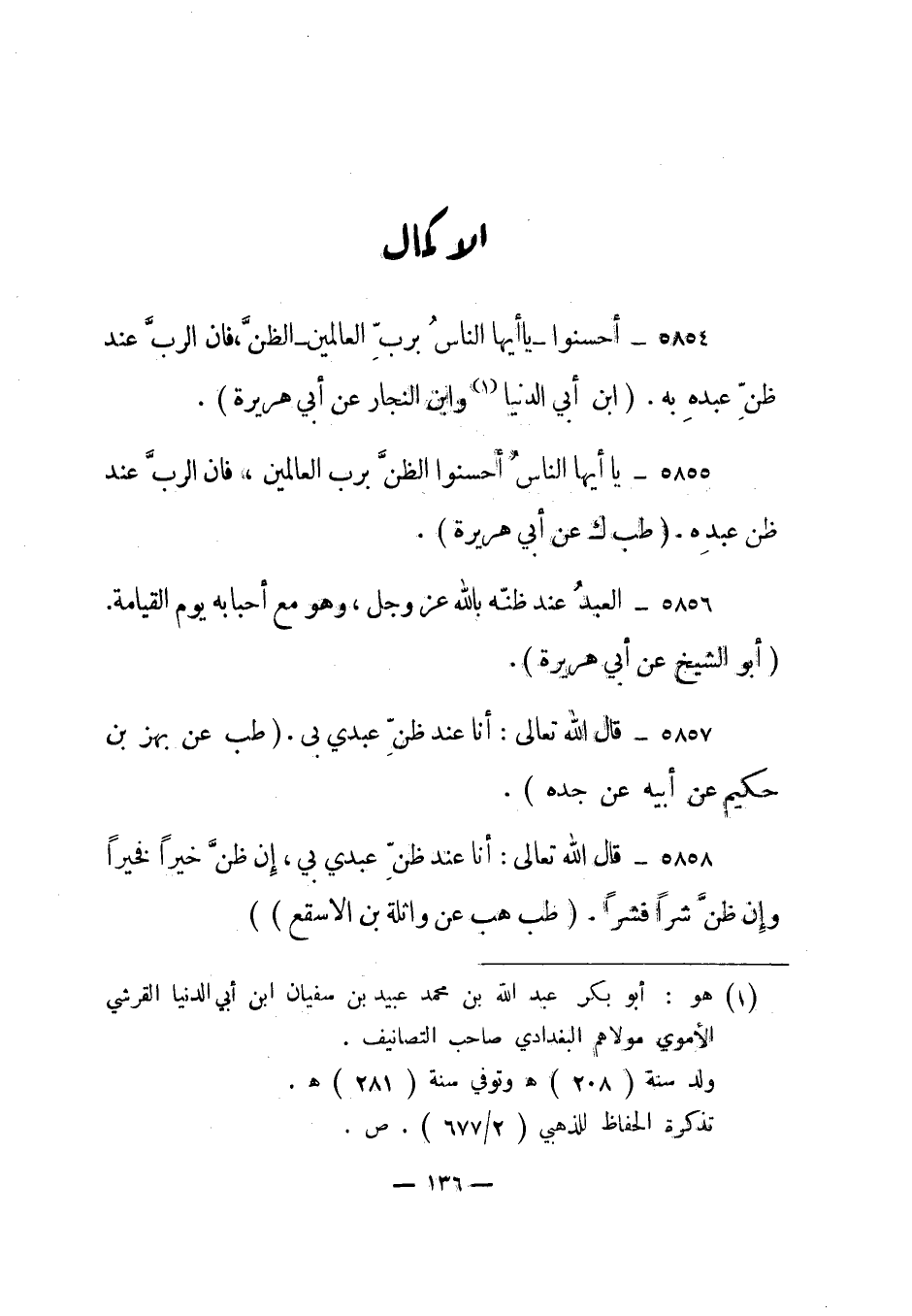 1 هو: أبو بكر عبد الله بن محمد عبيد بن سفيان ابن أبي الدنيا القرشي الأموي مولاهم البغدادي صاحب التصانيف.
