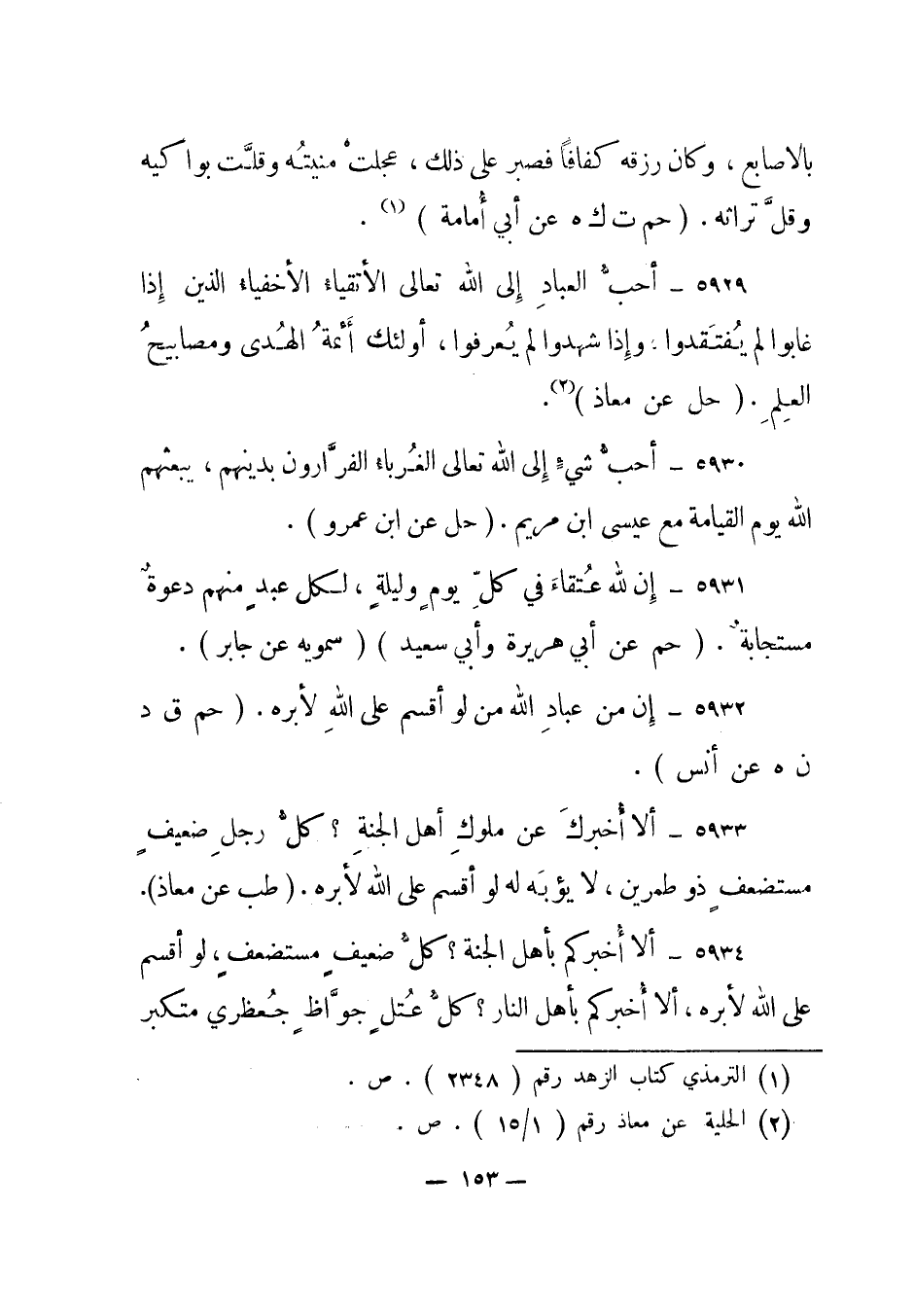 5929- أحب العباد إلى الله تعالى الأتقياء الأخفياء الذين إذا غابوا لم يفتقدوا، وإذا شهدوا لم يعرفوا، أولئك أئمة الهدى ومصابيح العلم. "حل عن معاذ"2.