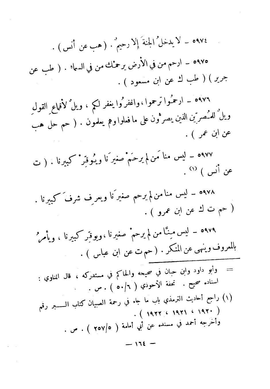 5977- ليس منا من لم يرحم صغيرنا ويوقر كبيرنا. "ت عن أنس"1.