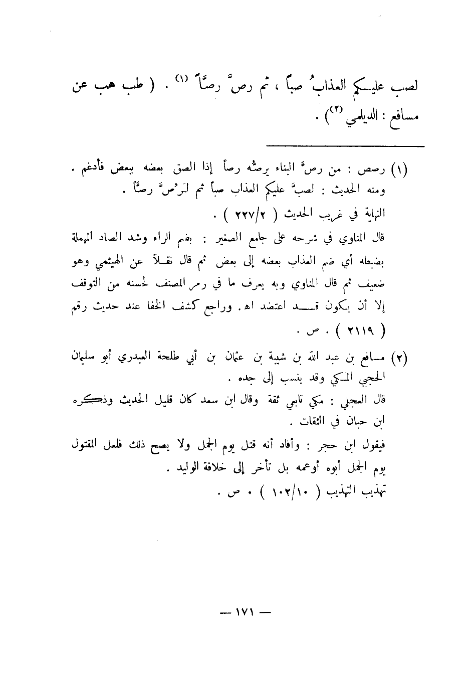 لصب عليكم العذاب صبا، ثم رص رصا1. "طب هب عن مسافع: الديلمي"2.