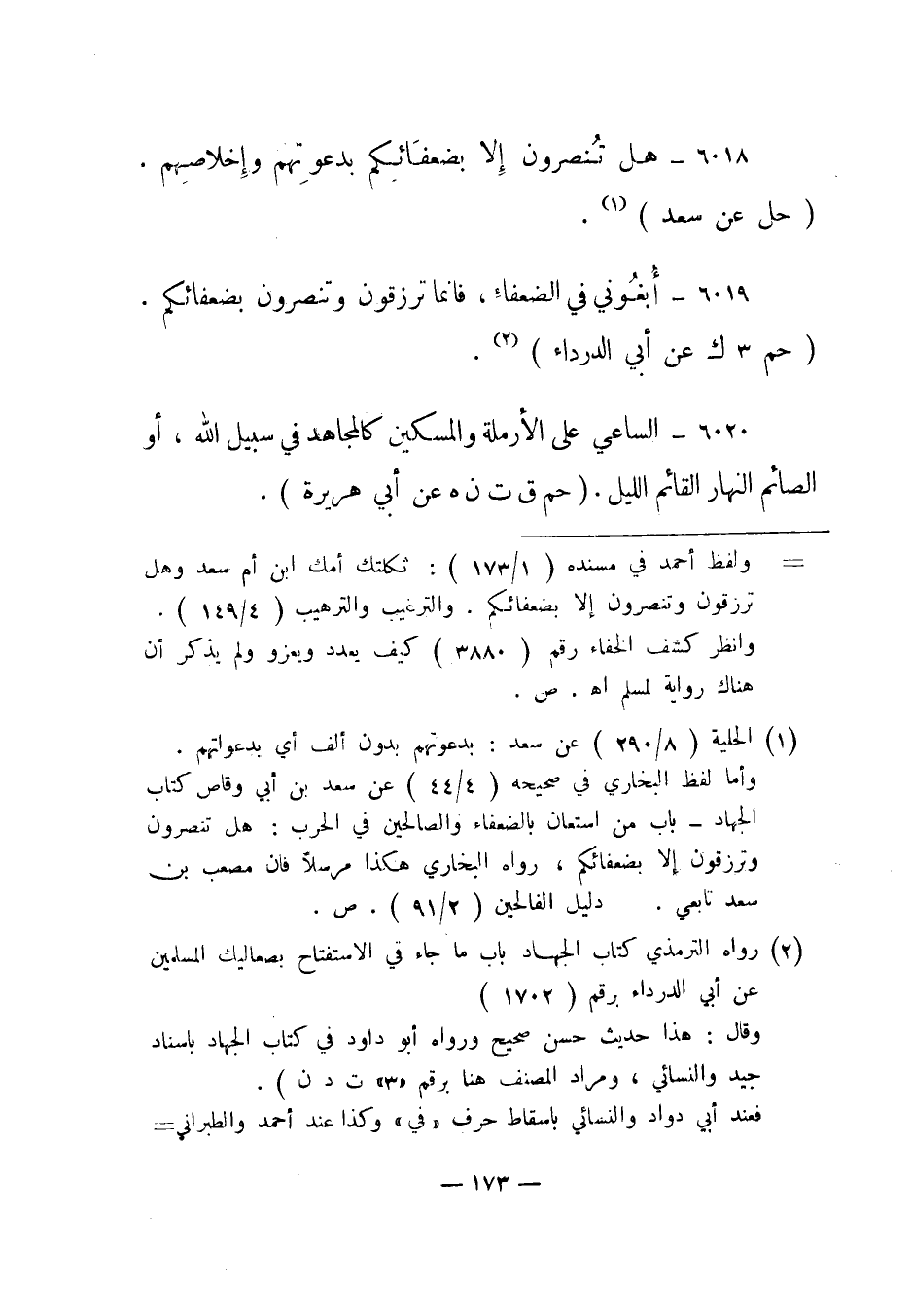 6018- هل تنصرون إلا بضعفائكم بدعوتهم وإخلاصهم. "حل عن سعد"1.