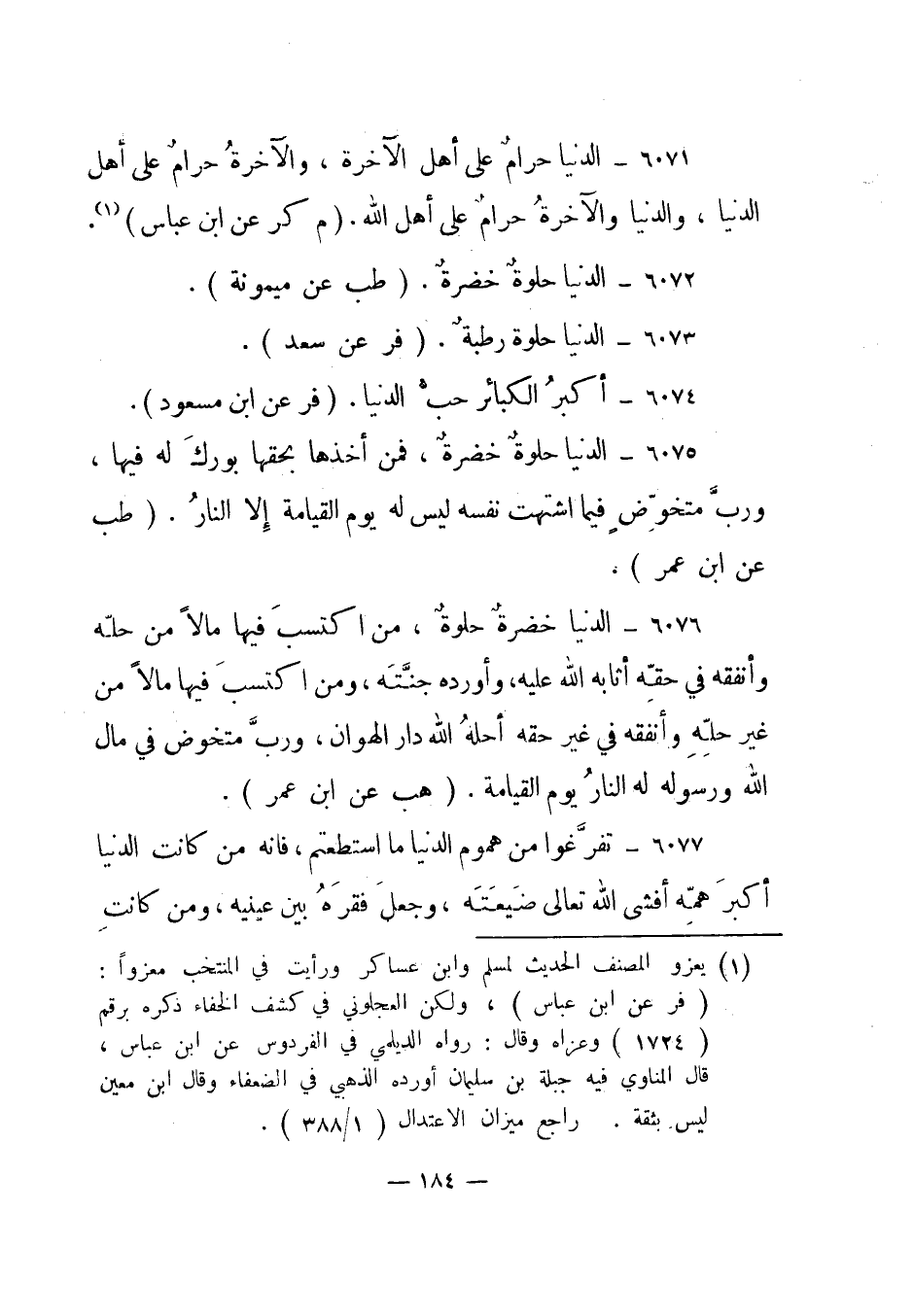 6071- الدنيا حرام على أهل الآخرة، والآخرة حرام على أهل الدنيا، والدنيا والآخرة حرام على أهل الله. "م كر عن ابن عباس"1
