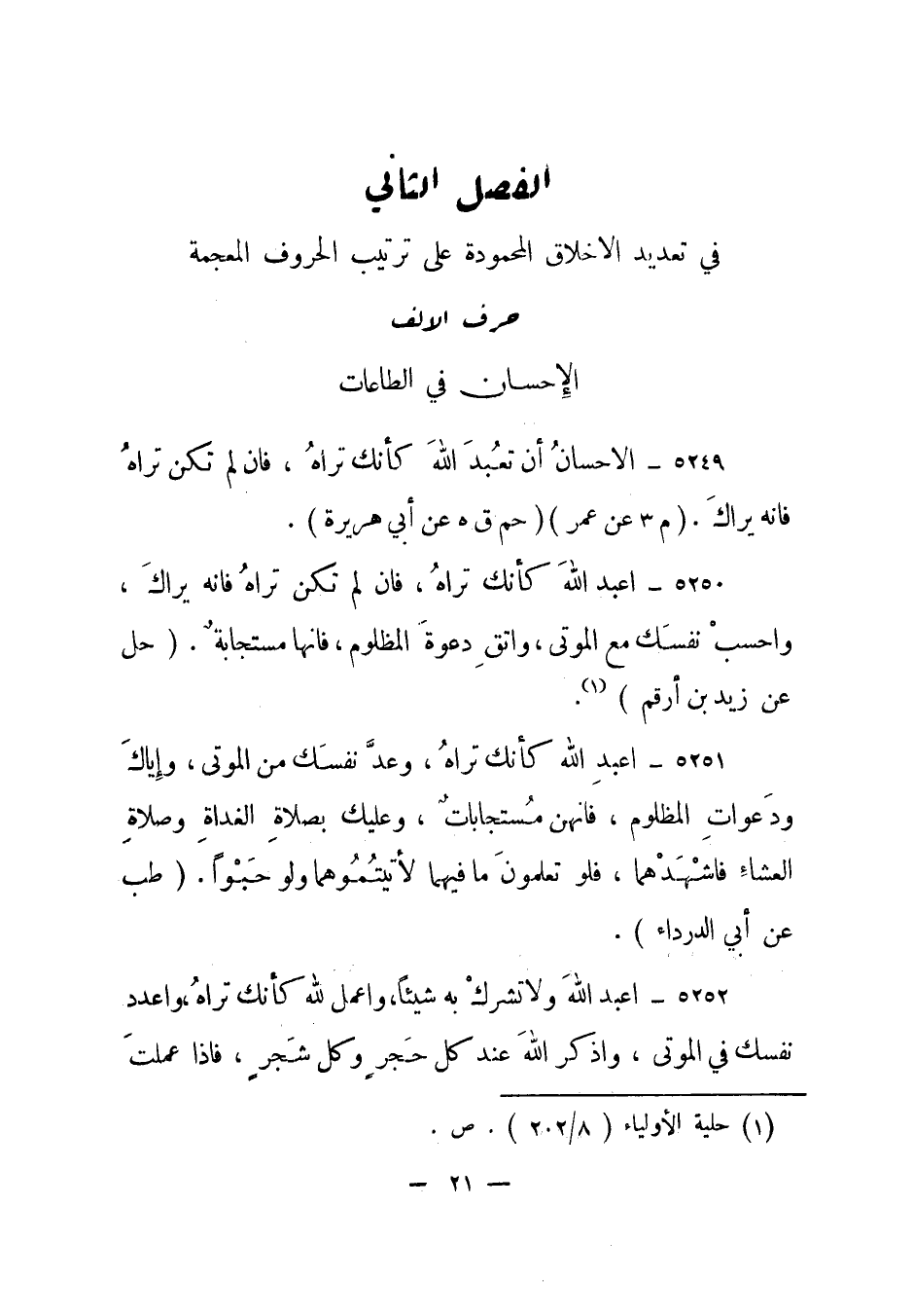 الفصل الثاني: في تعديد الأخلاق المحمودة على ترتيب الحروف المعجمة
