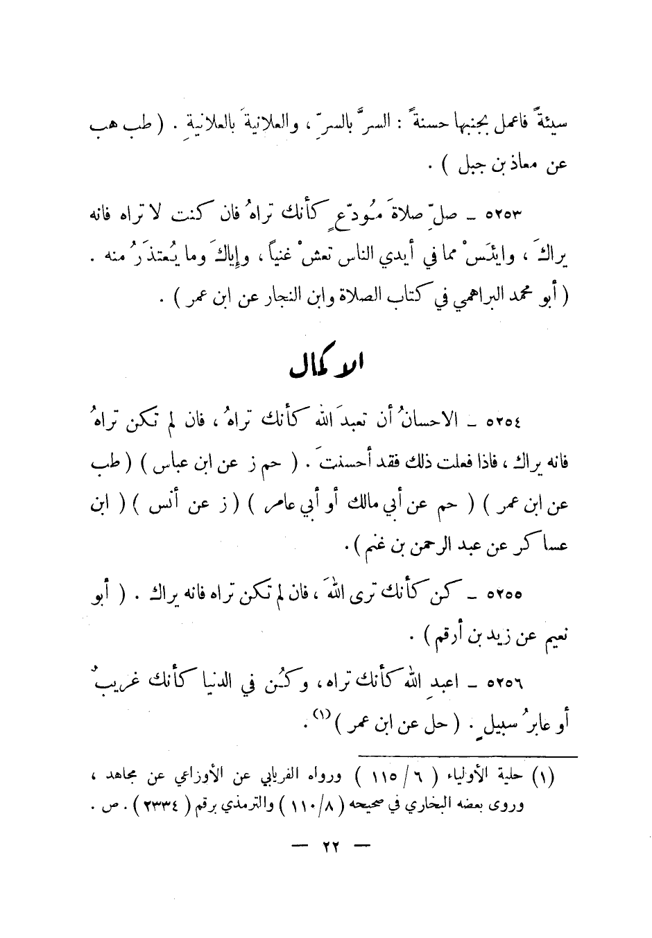 5256- اعبد الله كأنك تراه، وكن في الدنيا كأنك غريب أو عابر سبيل. "حل عن ابن عمر"1