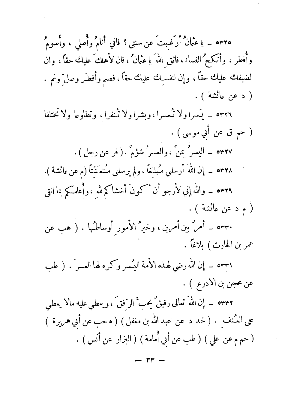 5326- يسروا ولا تعسروا، وبشرا ولا تنفروا، وتطاوعا ولا تختلفا. "حم ق عن أبي موسى".