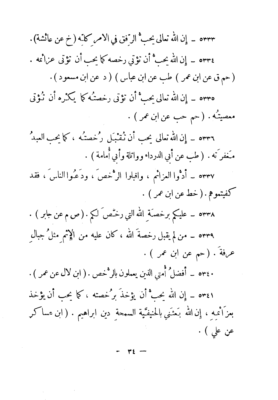 5340- أفضل أمتي الذين يعملون بالرخص. "ابن لال عن عمر".