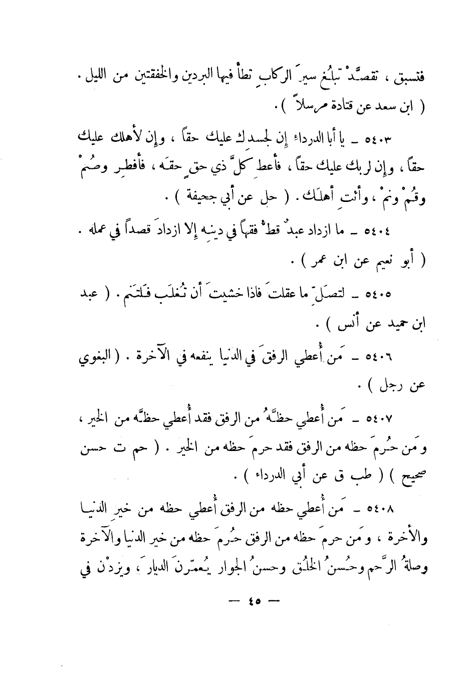 5404- ما ازداد عبد قط فقها في دينه إلا ازداد قصدا في عمله. "أبو نعيم عن ابن عمر".