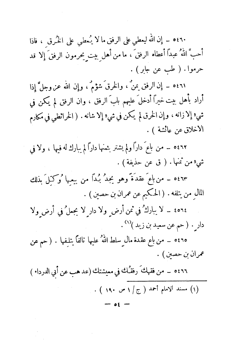5464- لا يبارك في ثمن أرض ولا دار لا يجعل في أرض ولا دار. "حم عن سعيد بن زيد"1