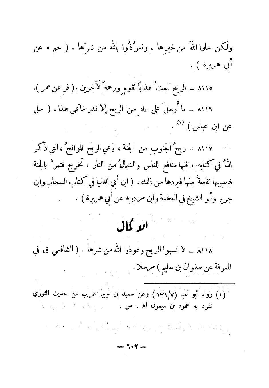 8115- الريح تبعث عذابا لقوم ورحمة لآخرين. "فر" عن عمر.
