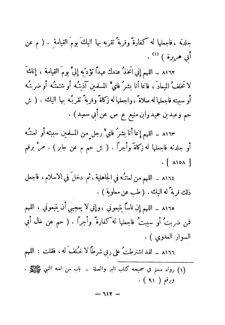 8165- اللهم إن ناسا يتبعوني، وإني لا يعجبني أن يتبعوني، اللهم فمن ضربت أو سببت فاجعلها له كفارة وأجرا. "حم" عن خال أبي السوار العدوي.