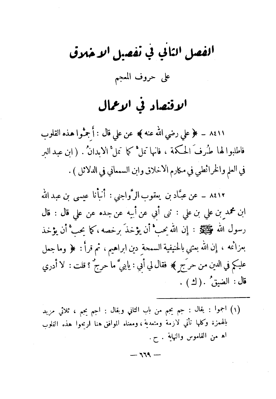 1 اجموا: يقال: جم يجم من باب الثاني ويقال: أجم يجم، ثلاثي مزيد بالهمزة وكلها تأتي لازمة ومتعدية، ومعناه الموافق هنا أريحوا هذه القلوب اه من القاموس والنهاية. ح.