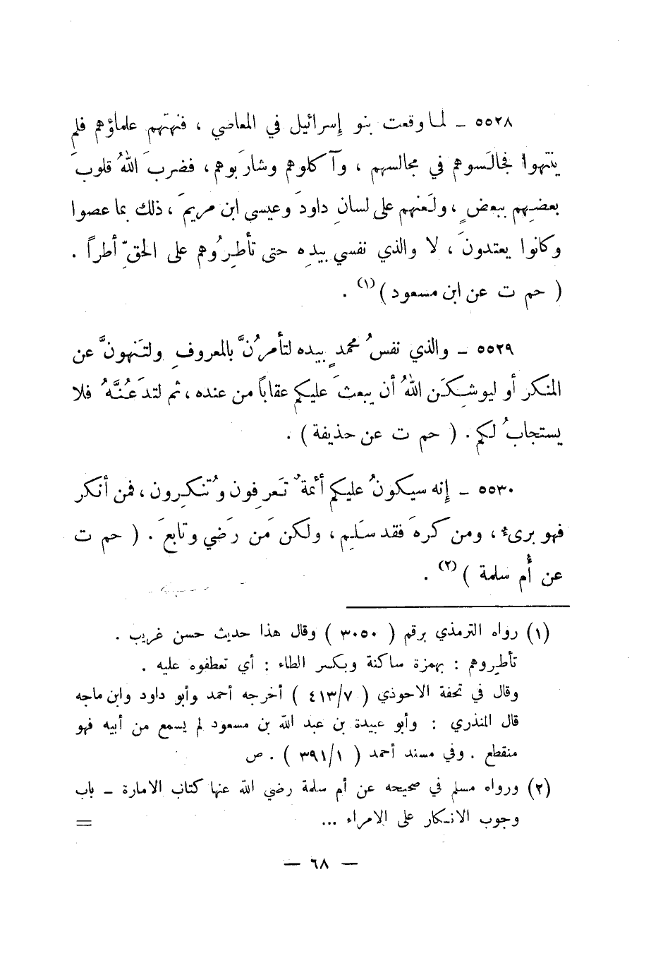 5530- إنه سيكون عليكم أئمة تعرفون وتنكرون، فمن أنكر فهو برئ، ومن كره فقد سلم، ولكن من رضي وتابع. "حم ت عن أم سلمة"2.