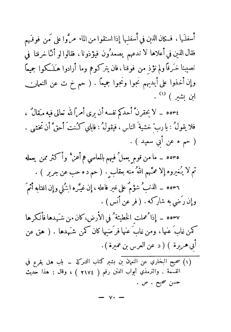 1 صحيح البخاري عن النعمان بن بشير كتاب الشركة، باب هل يقرع في القسمة. والترمذي أبواب الفتن رقم "2174"، وقال: هذا حديث حسن صحيح. ص".