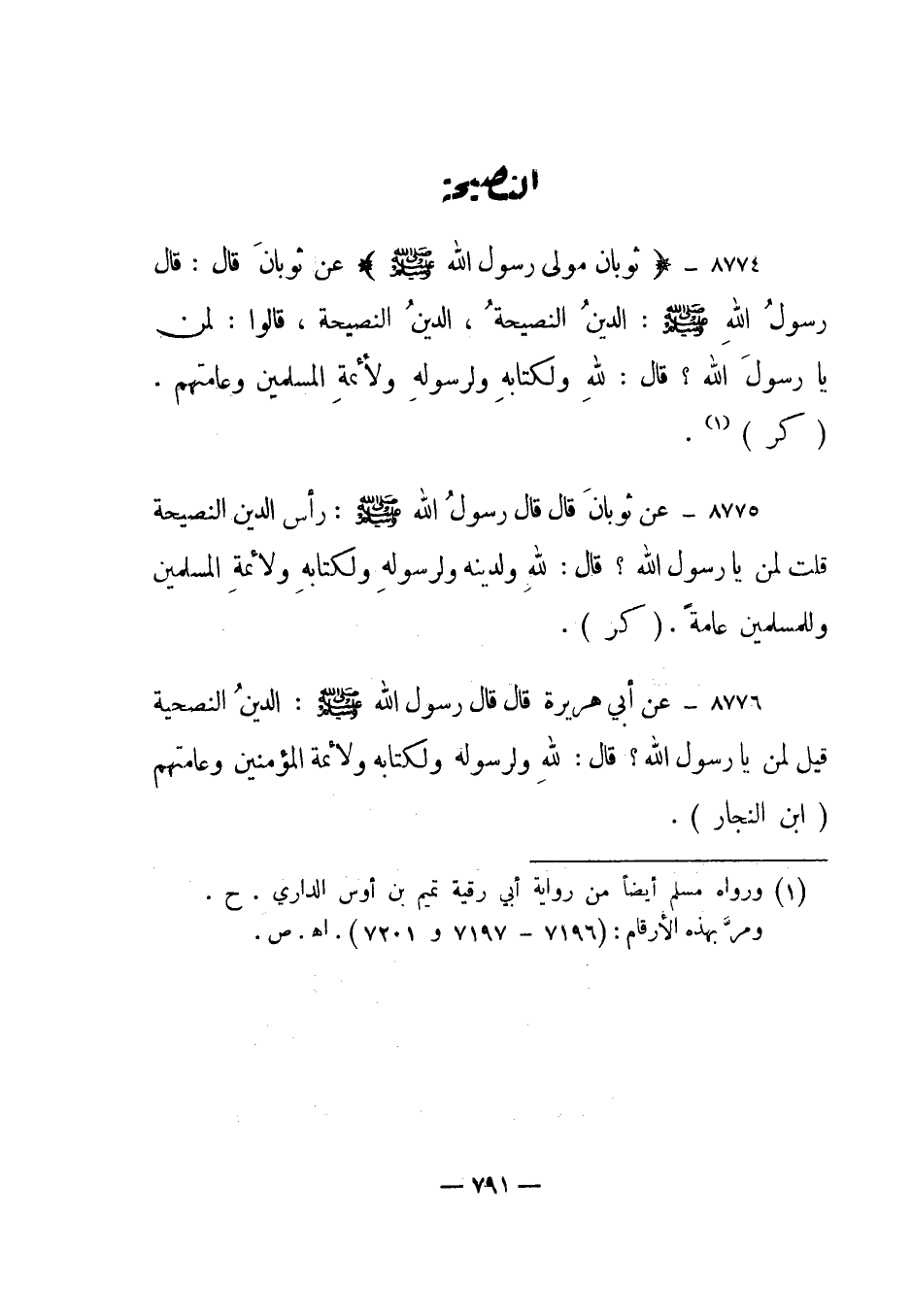 1 ورواه مسلم أيضا من رواية أبي رقية تميم بن أوس الداري. ح" ومر بهذه الأرقام: "7196 - 7197 و 7201". اه ص.