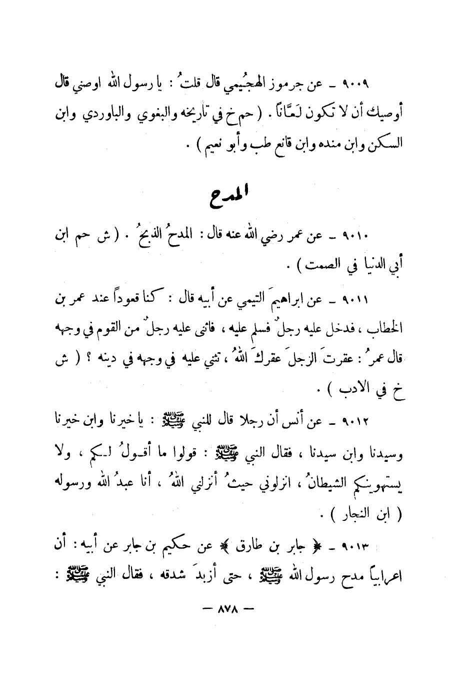 9010- عن عمر رضي الله عنه قال: المدح الذبح. "ش حم" ابن أبي الدنيا في الصمت.