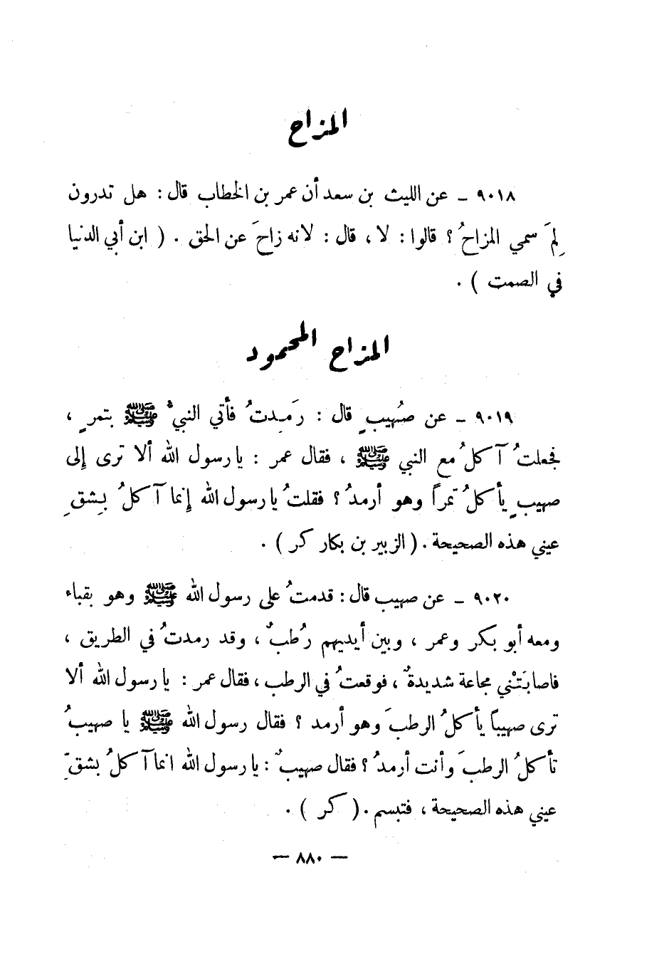 9018- عن الليث بن سعد أن عمر بن الخطاب قال: هل تدرون لم سمي المزاح؟ قالوا: لا، قال: لأنه زاح عن الحق. ابن أبي الدنيا في الصمت.