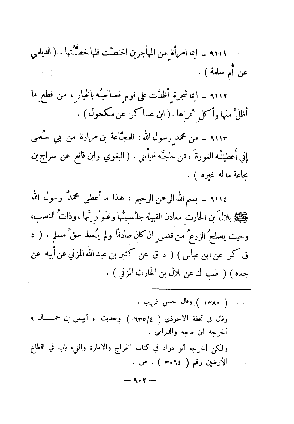 9111- أيما امرأة من المهاجرين اختطت فلها خطتها. الديلمي عن أم سلمة.