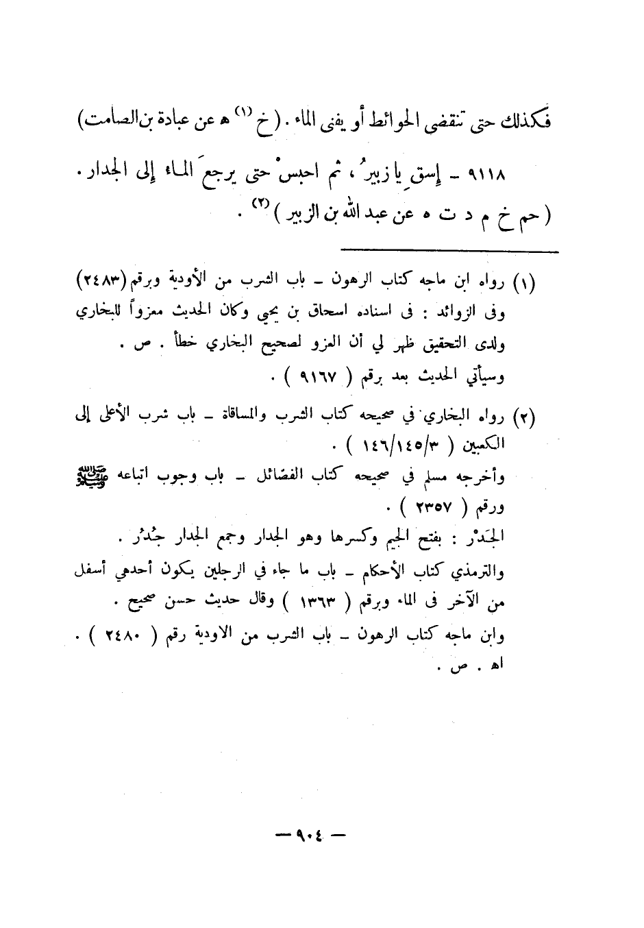 9118- إسق يا زبير، ثم احبس حتى يرجع الماء إلى الجدار.