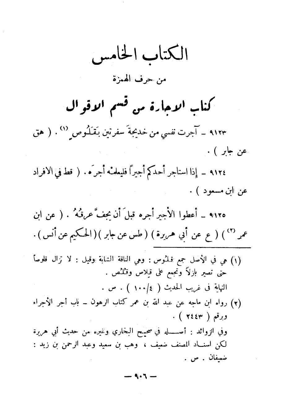 9125- أعطوا الأجير أجره قبل أن يجف عرقه. عن ابن عمر2 "ع" عن أبي هريرة "طس" عن جابر، الحكيم عن أنس.