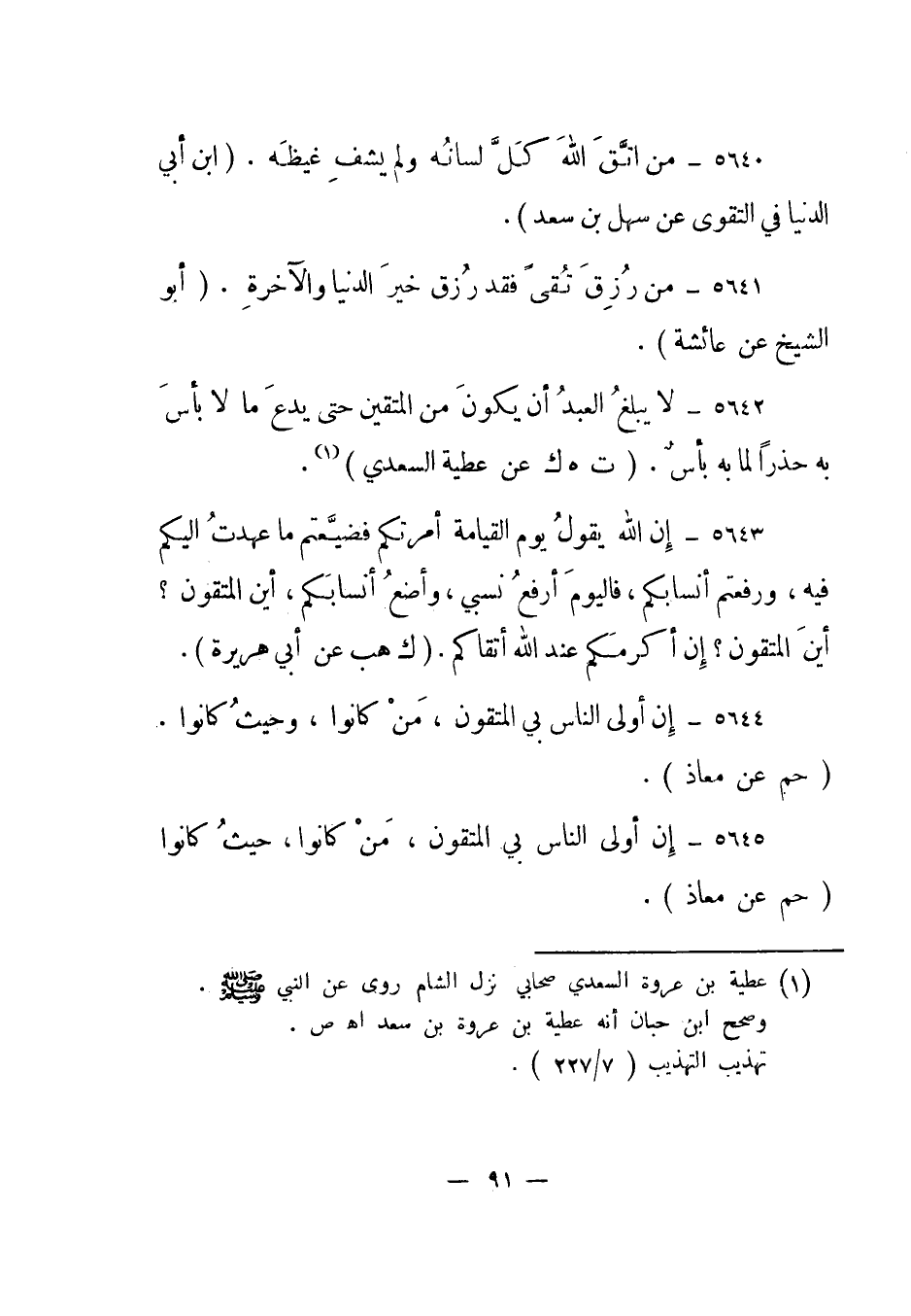 5642- لا يبلغ العبد أن يكون من المتقين حتى يدع ما لا بأس به حذرا لما به بأس."ت هـ ك عن عطية السعدي"1.