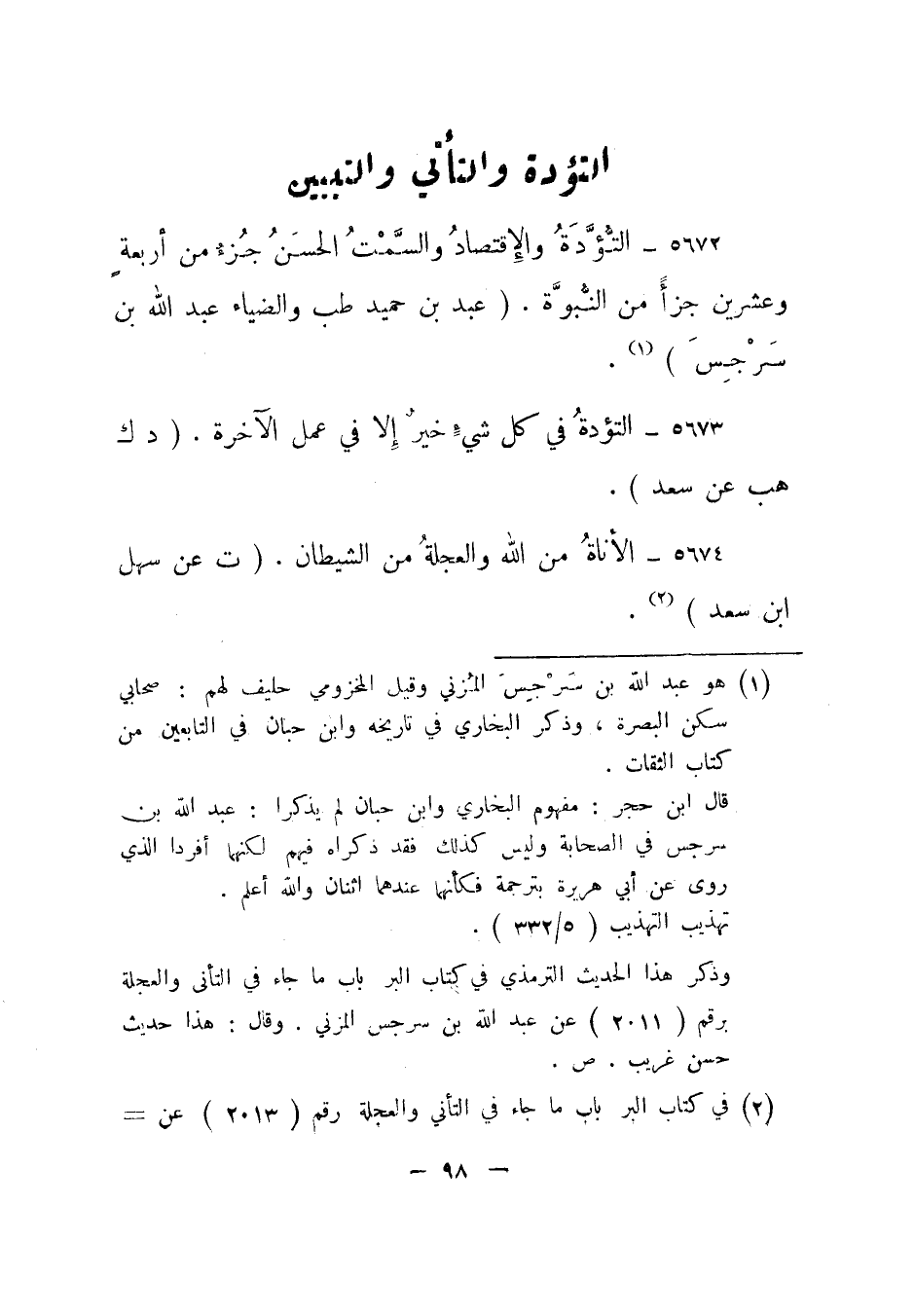 5674- الأناة من الله والعجلة من الشيطان. "ت عن سهل بن سعد"2