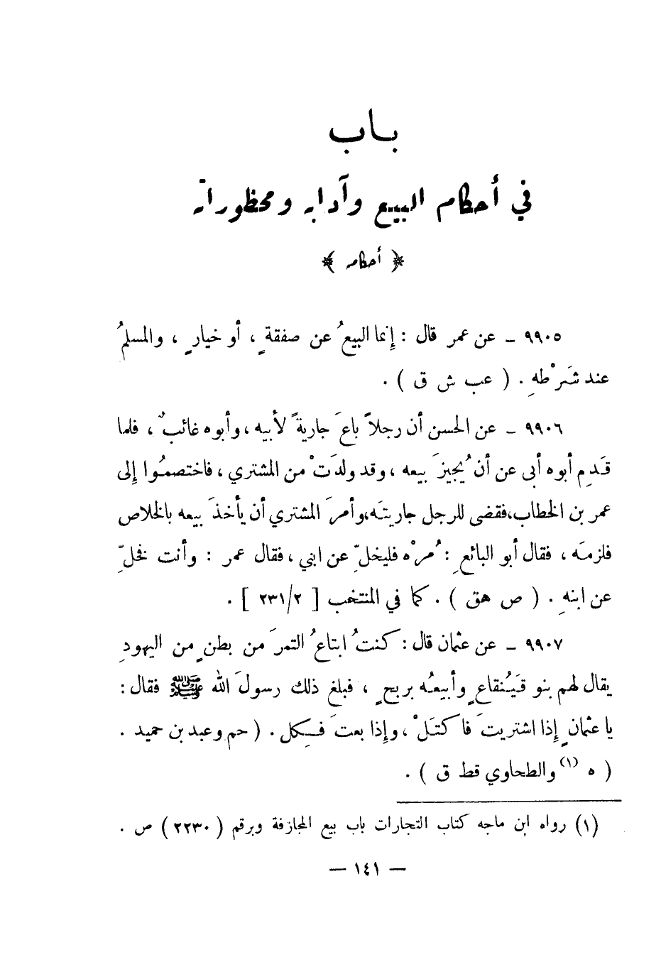 باب: في أحكام البيع وآدابه ومحظوراته