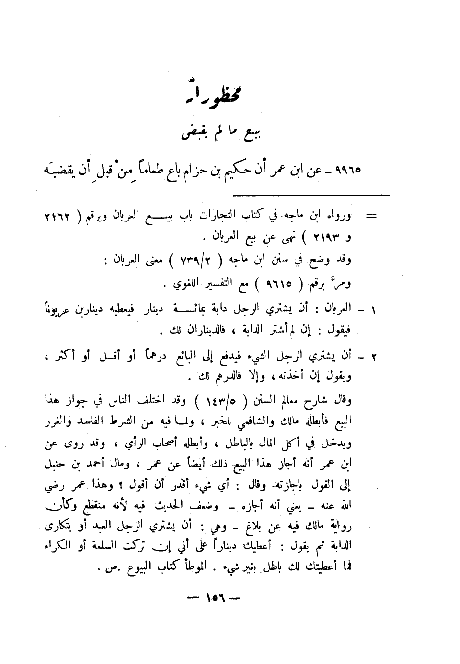 = ورواه ابن ماجه في كتاب التجارات باب بيع العربان وبرقم "2162 و 2193" نهى عن بيع العربان.