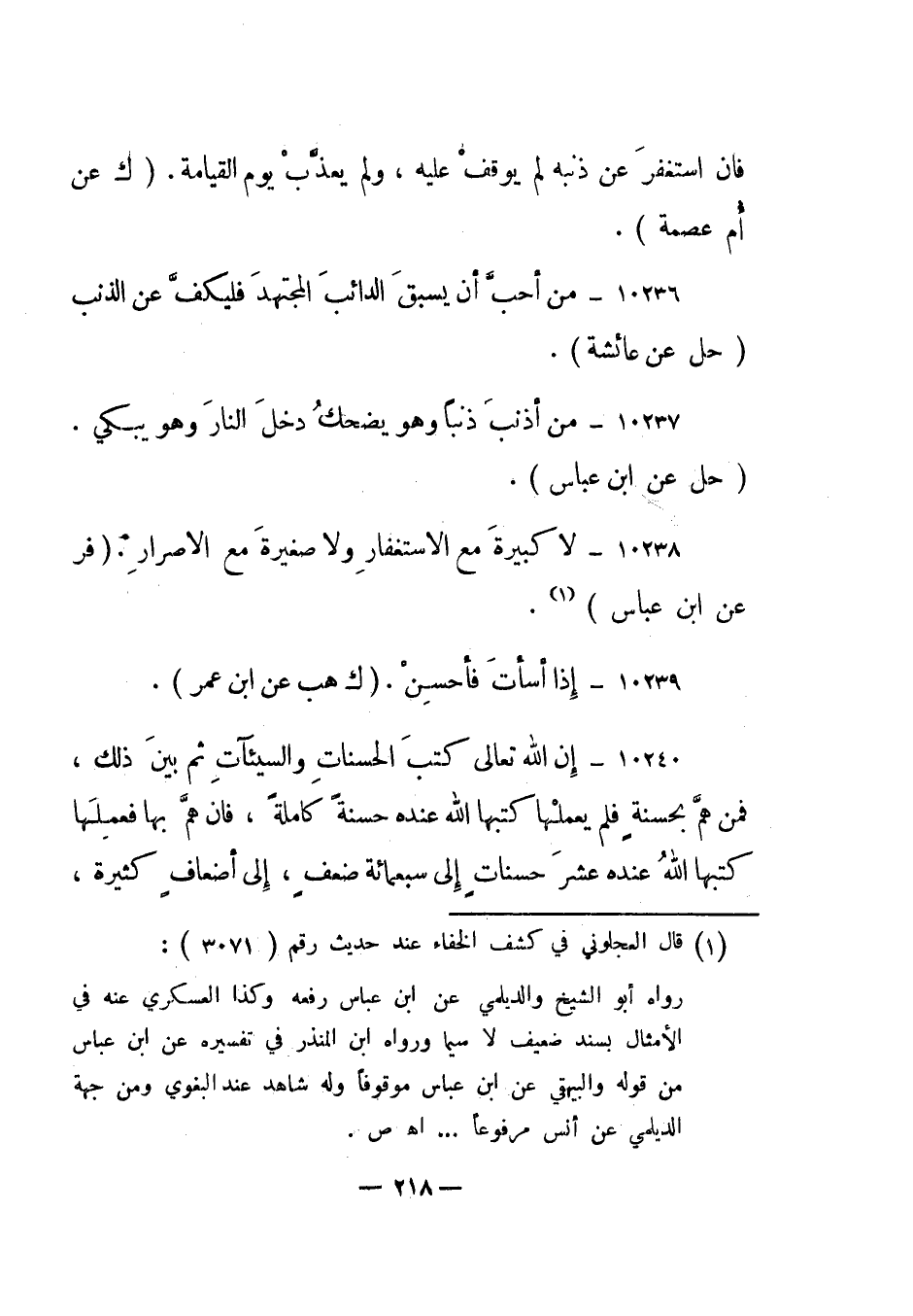 10237- "من أذنب ذنبا وهو يضحك دخل النار وهو يبكي". "حل عن ابن عباس".